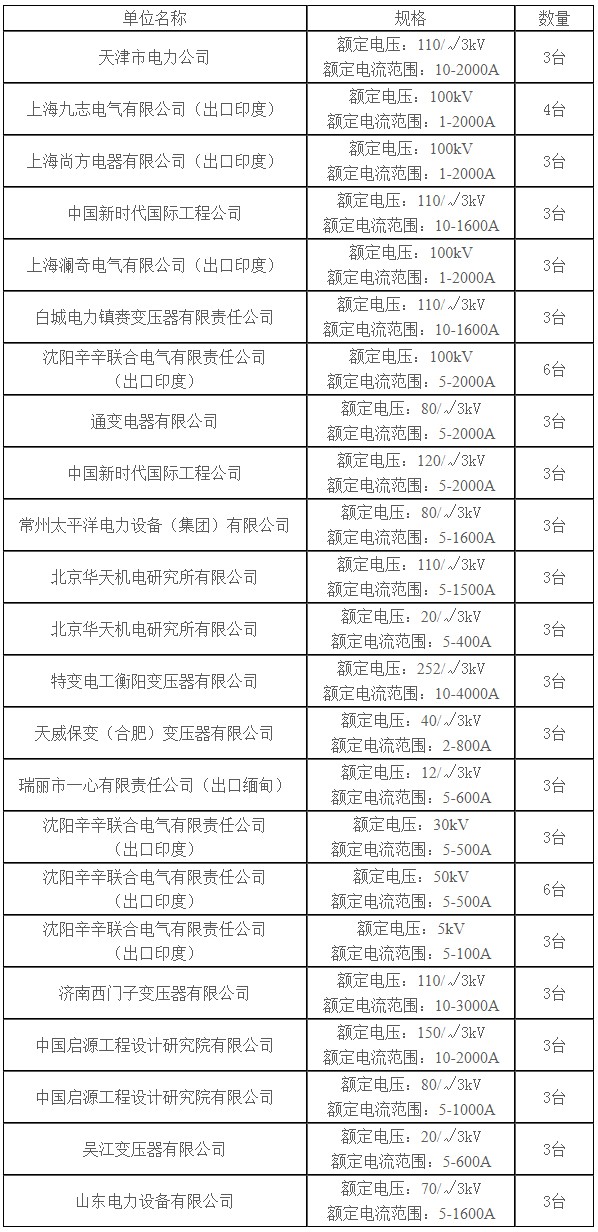 新型電流互感器國(guó)內(nèi)用戶見下表: