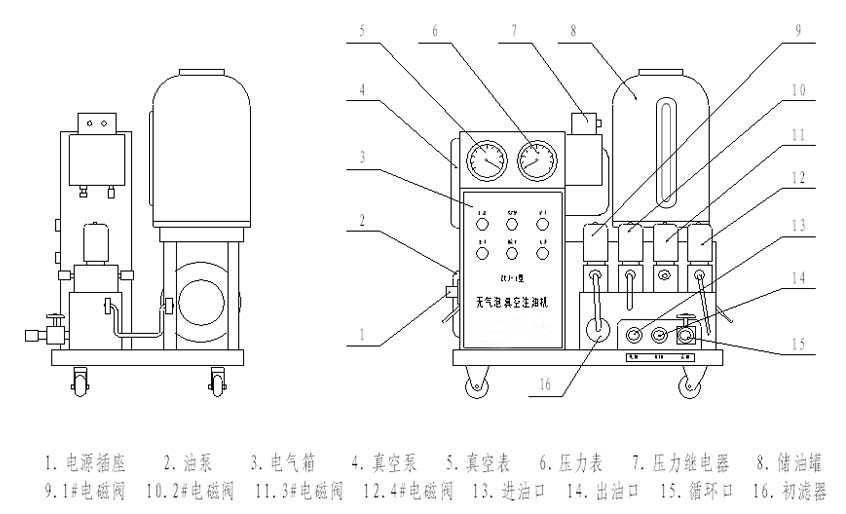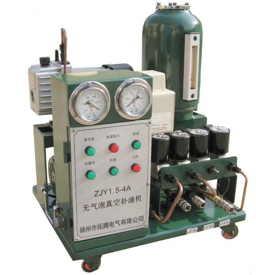 ZYJ型小型無氣泡真空注油機(jī)主要由真空泵、油泵、儲油閃蒸罐、初濾器、浮漂閥、控制系統(tǒng)組成。