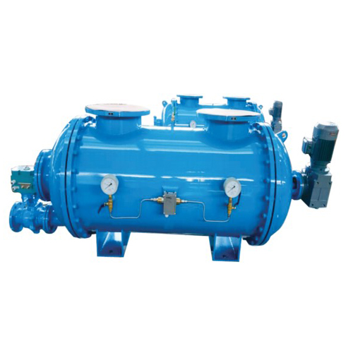 自動臥式濾水器主要由濾水器本體、不銹鋼濾芯、刮刀、刮刷、減速機、電動排污閥、電氣控制系統(tǒng)、排污機構、放氣閥、進出水管及排污管等組成。